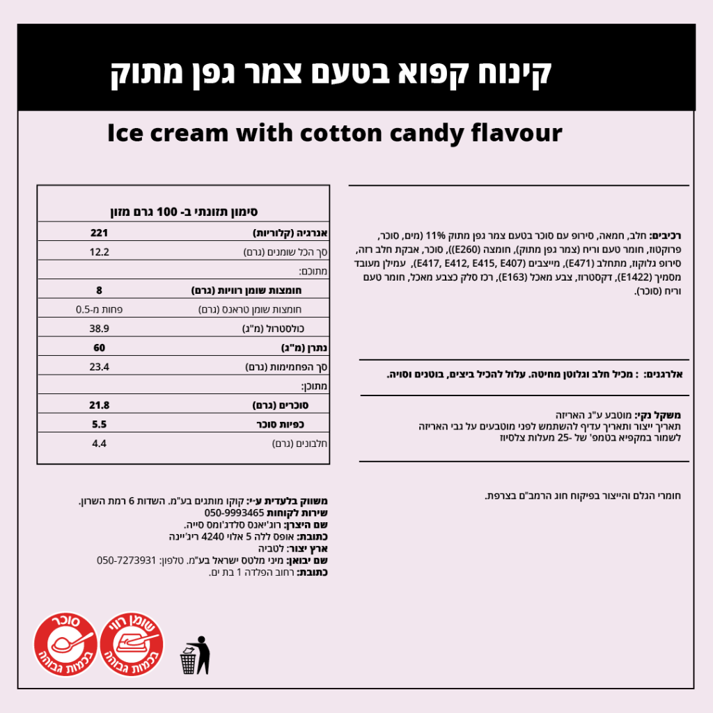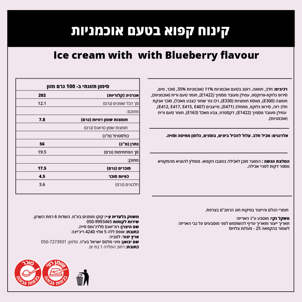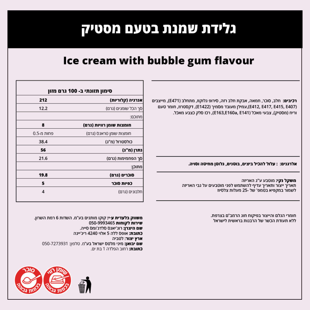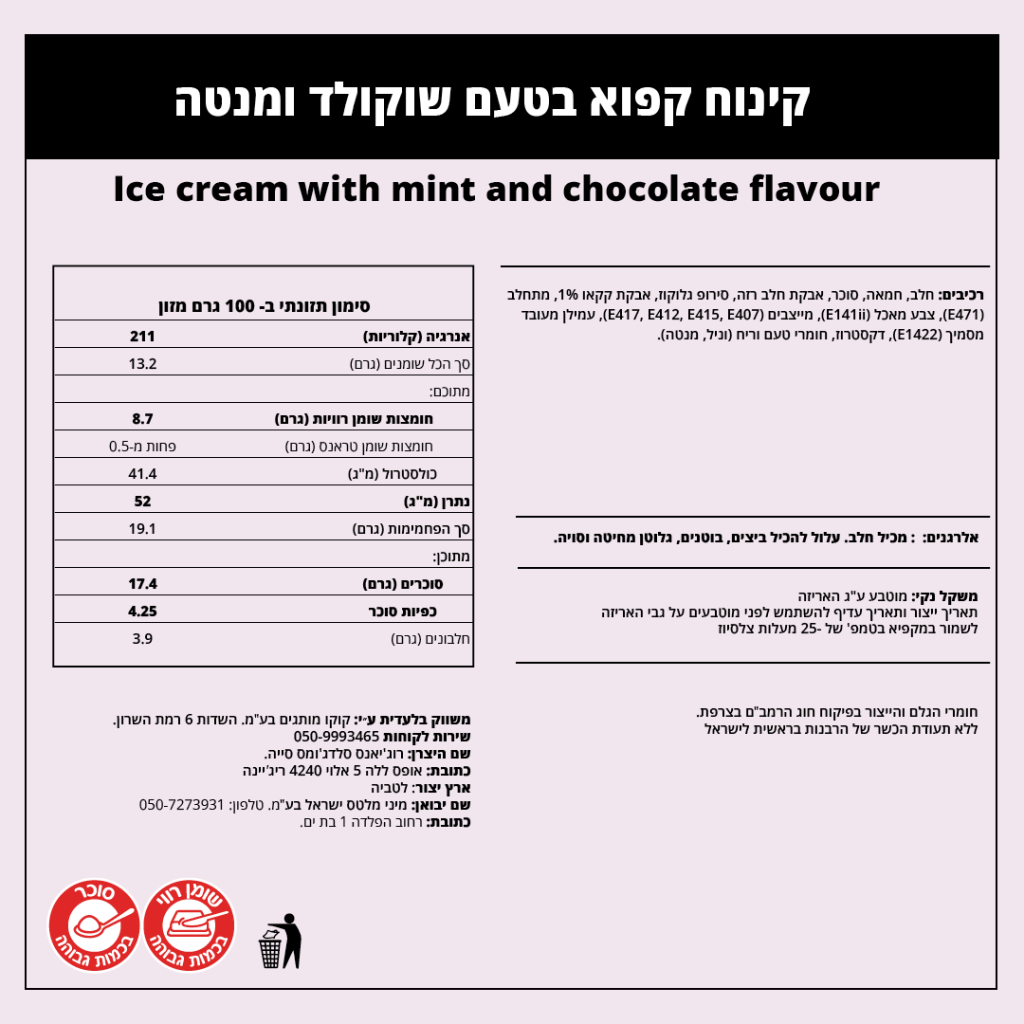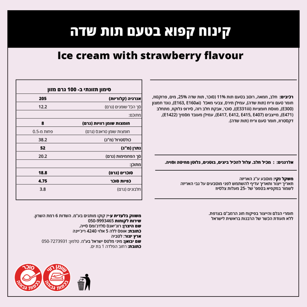 מאחר והמפעל אינו סטרילי – אנו ממליצים לאנשים עם אלרגיה מסכנת חיים להימנע מאכילת הגלידה.
