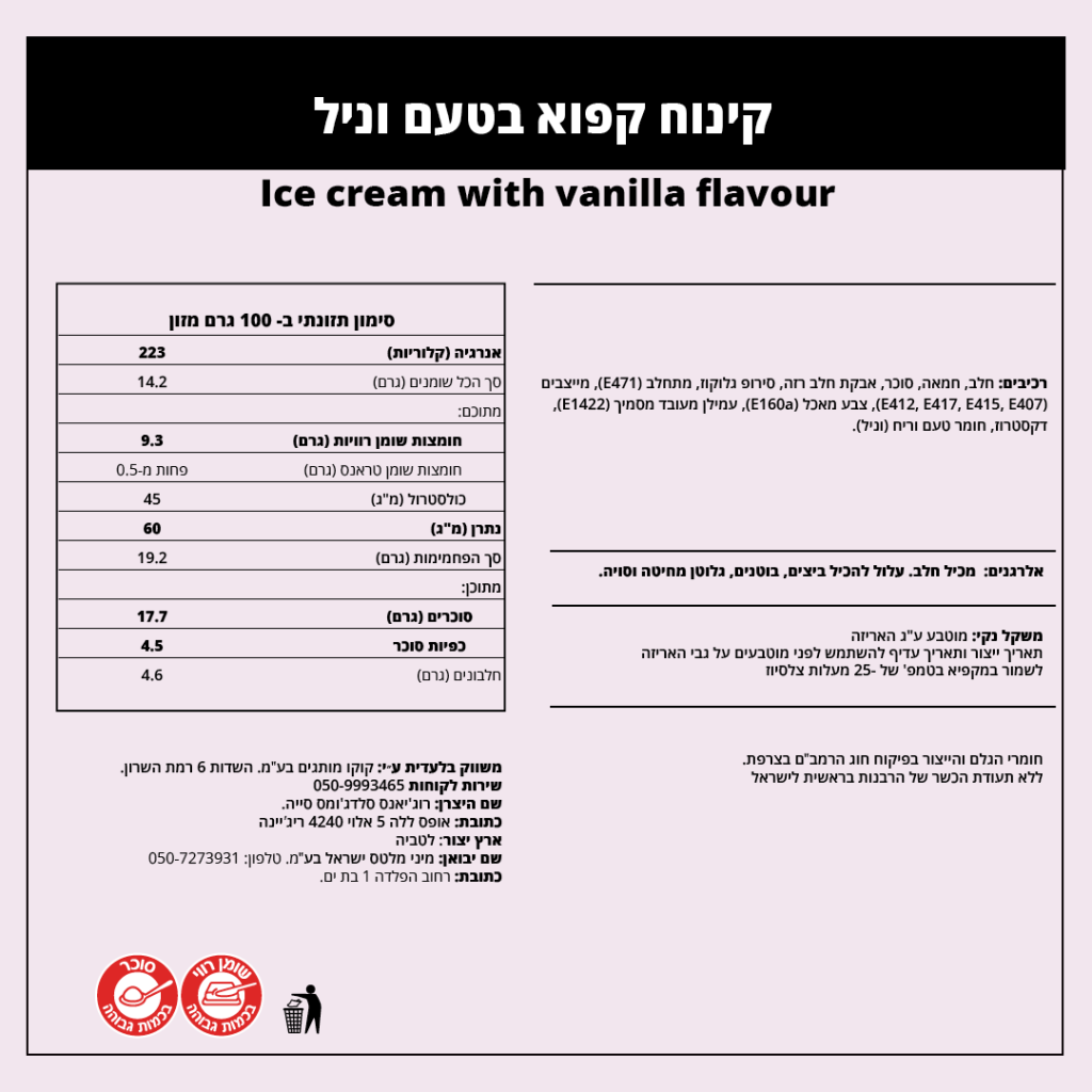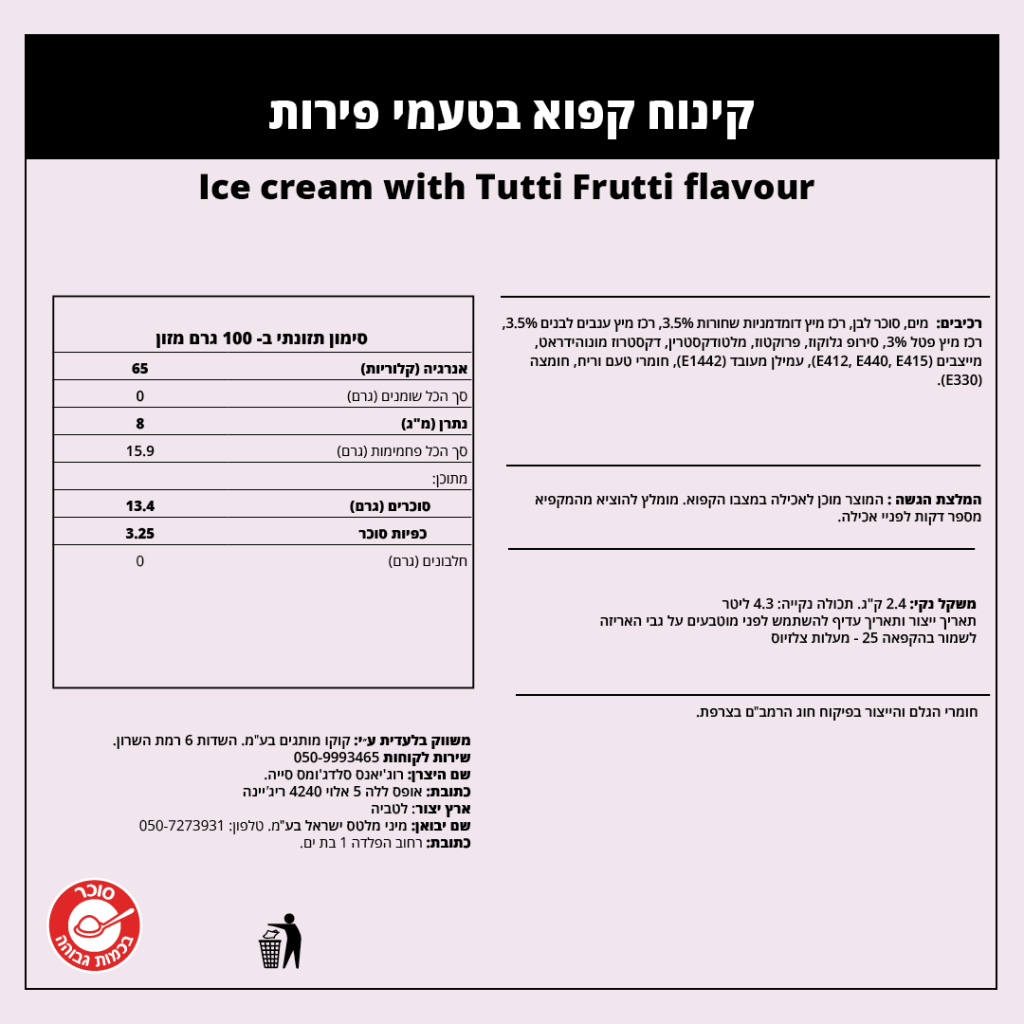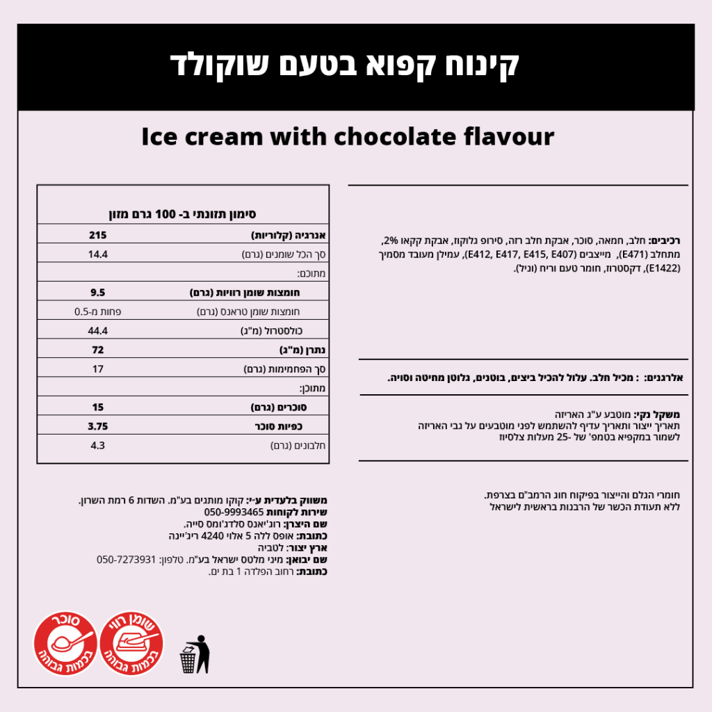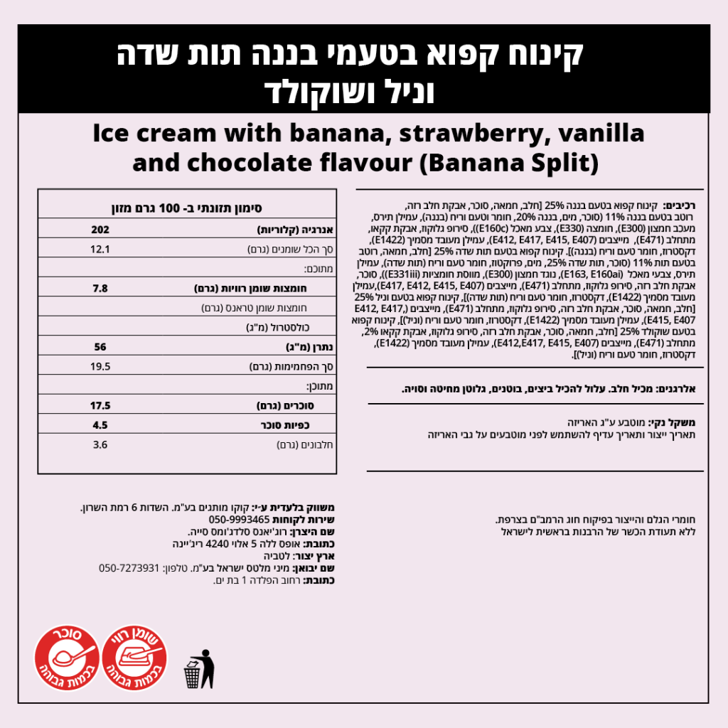 מאחר והמפעל אינו סטרילי – אנו ממליצים לאנשים עם אלרגיה מסכנת חיים להימנע מאכילת הגלידה.