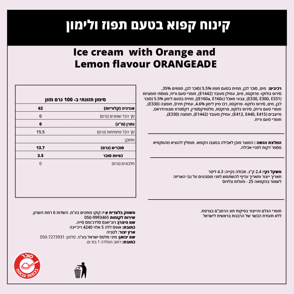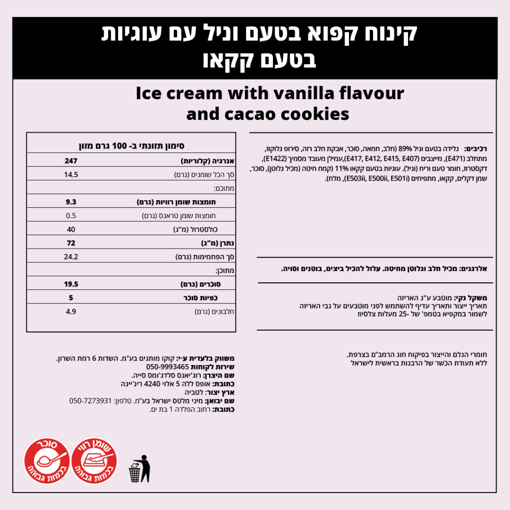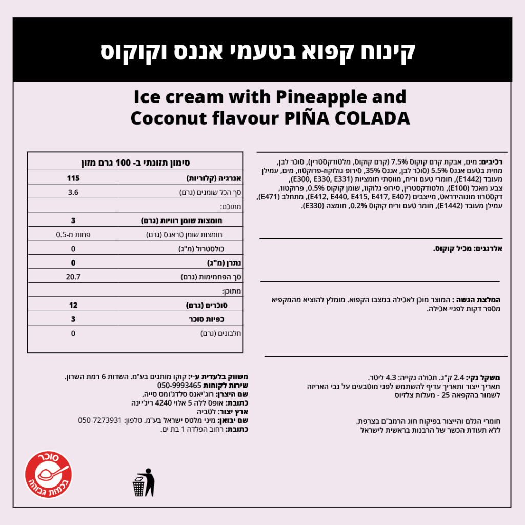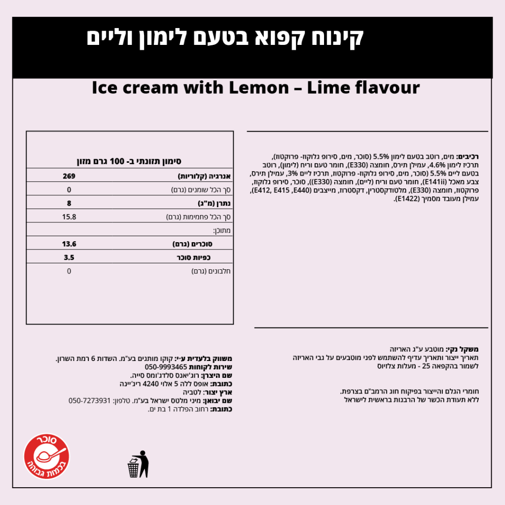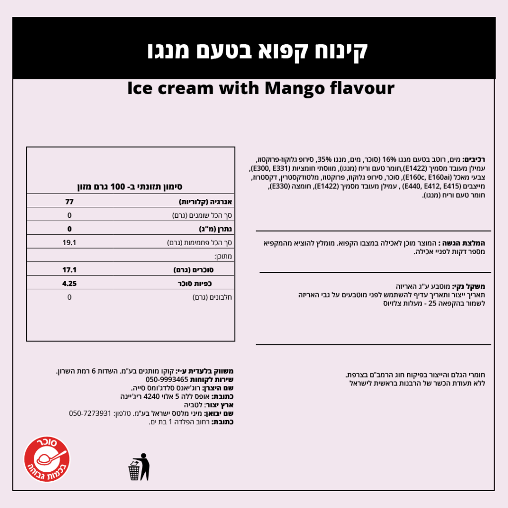 מאחר והמפעל אינו סטרילי – אנו ממליצים לאנשים עם אלרגיה מסכנת חיים להימנע מאכילת הגלידה.